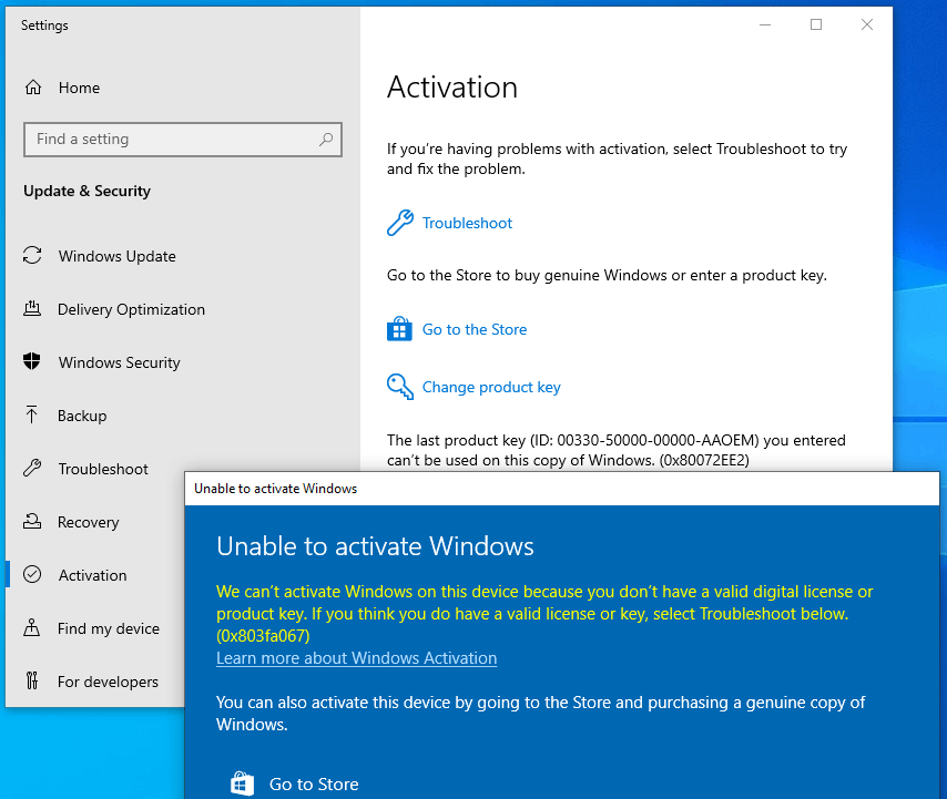 This error often occurs when you try to upgrade Windows 10 Home to Professional or your Home version has already been activated/linked with a digital license.