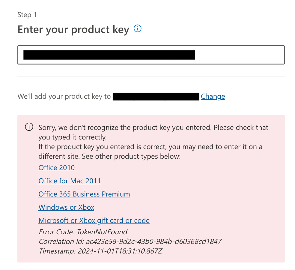 The error in the image occurs because the website setup.office.com is only for Home & Student versions.