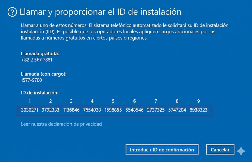 Paso 3: Llame y proporcione su ID de instalación